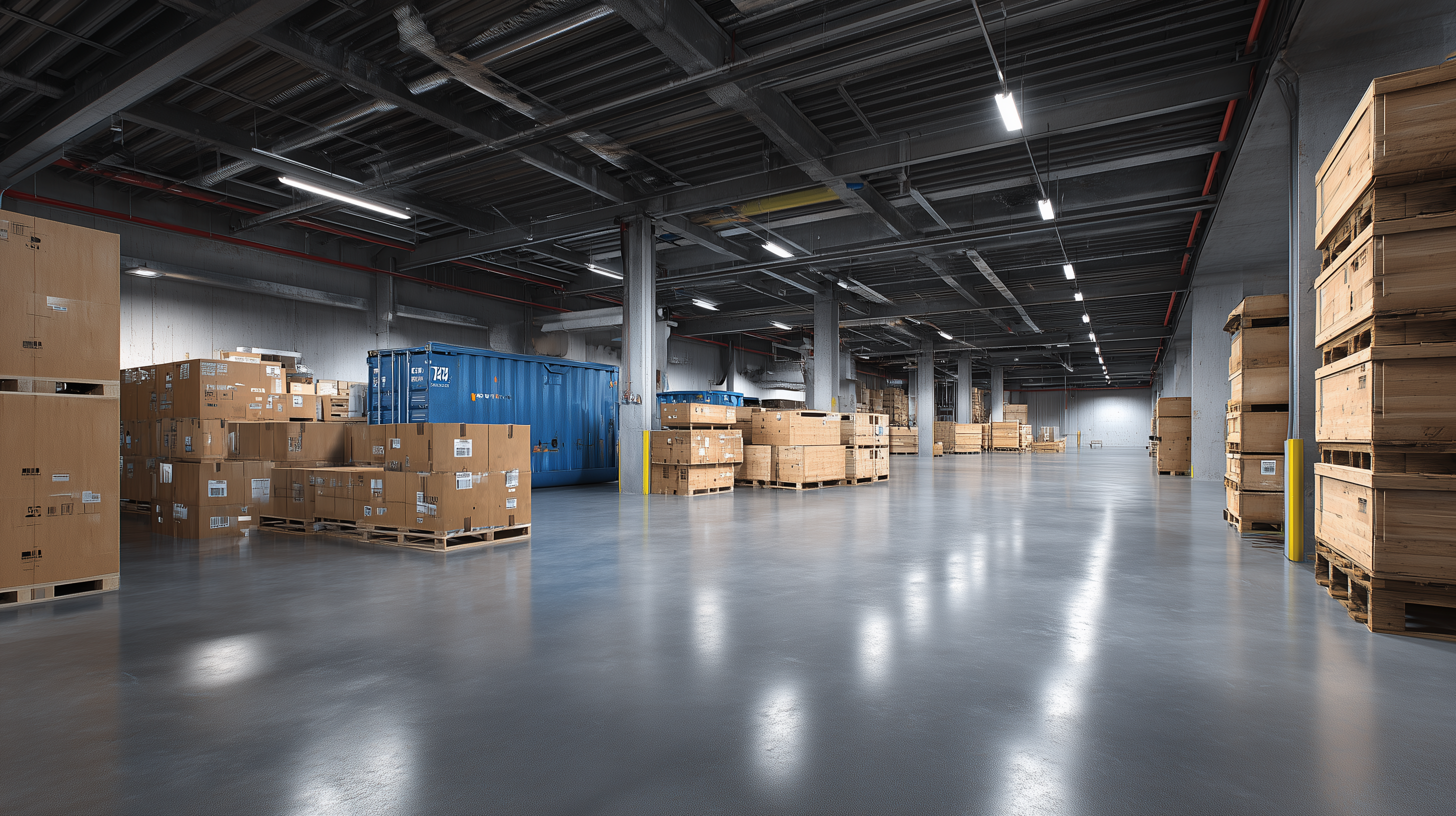 Пол склада испытывает колоссальные нагрузки. Тяжелые погрузчики, стеллажи с товаром, постоянное движение техники. Если при проектировании ошибиться в расчетах прочности и толщины бетонного покрытия, через пару лет появятся трещины, выбоины, пыление.